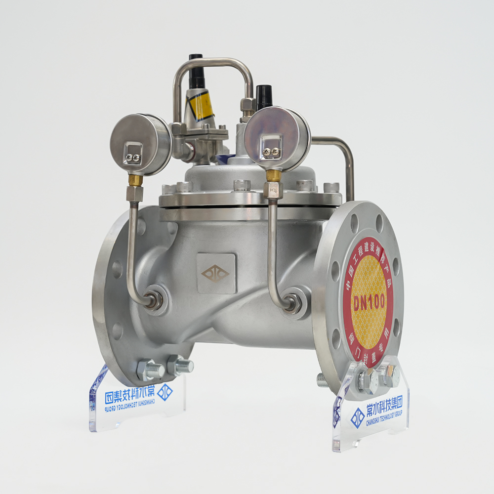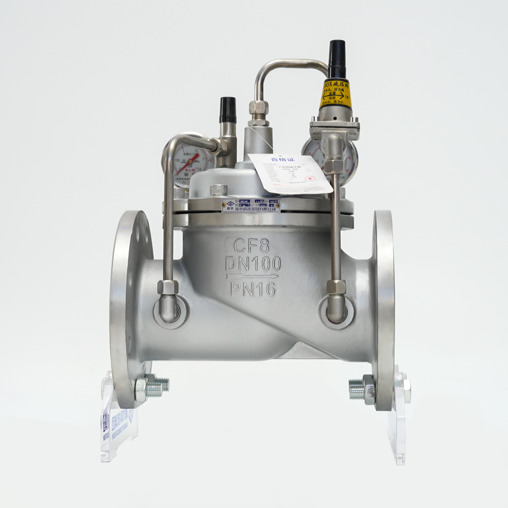সামঞ্জস্যযোগ্য চাপ-হ্রাসকারী ভালভ হল একটি ডায়াফ্রাম-টাইপ হাইড্রোলিকভাবে চালিত টাইপ, যা জল সরবরাহ এবং নিষ্কাশন ব্যবস্থায় ইনস্টল করা হয় এবং একটি নির্দিষ্ট মান পর্যন্ত প্রধান ভালভের আউটলেট চাপ নিয়ন্ত্রণ করে। পাইলট ভালভ সামঞ্জস্য করে খাঁড়ি চাপ একটি প্রয়োজনীয় আউটলেট চাপে হ্রাস করা যেতে পারে এবং আউটলেট চাপকে মাধ্যমটির শক্তির উপর নির্ভর করে স্থিতিশীল রাখা যেতে পারে, অর্থাৎ, খাঁড়ি চাপ বা আউটলেট প্রবাহের পরিবর্তনের কারণে আউটলেট চাপ পরিবর্তিত হয় না। যখন ভালভের সামনের চাপ ভালভের পিছনের চাপের চেয়ে কম হয়, তখন প্রধান ভালভ স্বয়ংক্রিয়ভাবে ধীরে ধীরে বন্ধ হয়ে যাবে।